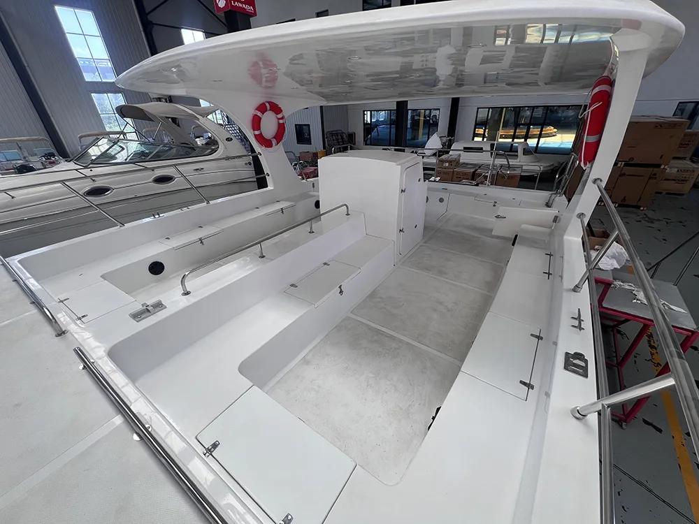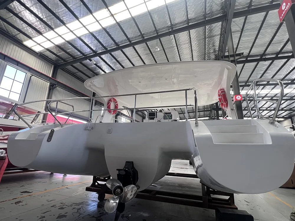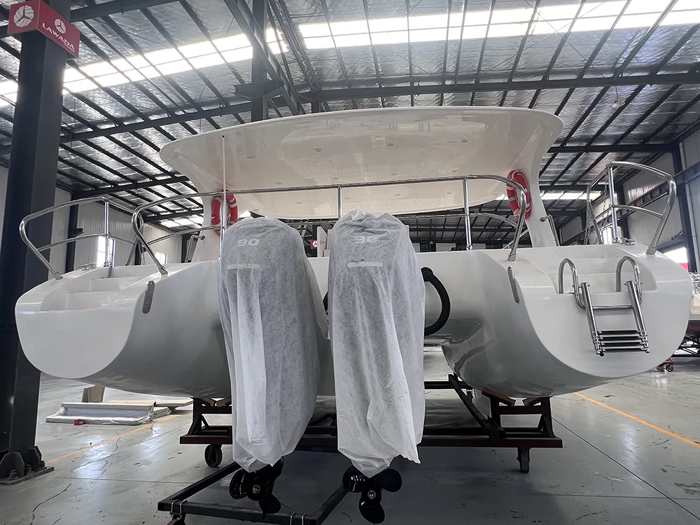 ທະນຸສອນ®catamaran ການຄ້າ 30ft ສາມາດໄດ້ຮັບການຕິດຕັ້ງເຄື່ອງຈັກພາຍນອກ, ເຄື່ອງຈັກອອກນອກຫຼືເຄື່ອງຈັກໃນປ່ອງຢ້ຽມຕາມຄວາມຕ້ອງການຂອງທ່ານ